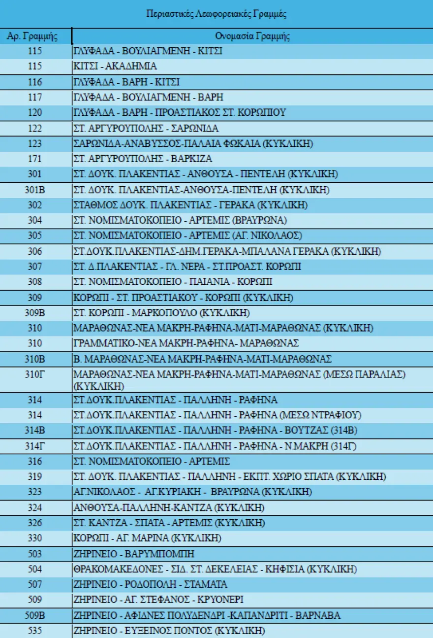 Ωστόσο, θα υπάρξουν δρομολόγια που θα πραγματοποιηθούν κανονικά, χωρίς αλλαγές. Πρόκειται για αυτά που εκτελούνται από τις περιαστικές γραμμές της Ανατολικής και Δυτικής Αττικής και συγκεκριμένα: