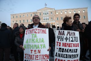 Μέσα σε συνθήκες ισχυρής αντιπαράθεσης εν ενεργεία και απόστρατοι στρατιωτικοί πραγματοποιούν συγκέντρωση διαμαρτυρίας στο Σύνταγμα, εκφραζόμενοι κατά του νομοσχεδίου του υπουργείου Εθνικής Άμυνας με τίτλο «Χάρτης Μετάβασης των Ενόπλων Δυνάμεων στη Νέα Εποχή», το οποίο συζητείται και ψηφίζεται στην Ολομέλεια της Βουλή.