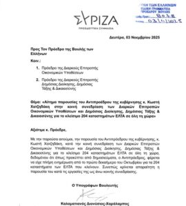 ▪️Αίτημα του ΣΥΡΙΖΑ – ΠΣ παρουσίας του Κ. Χατζηδάκη στην κοινή συνεδρίαση των Επιτροπών για το κλείσιμο 204 καταστημάτων των ΕΛΤΑ*