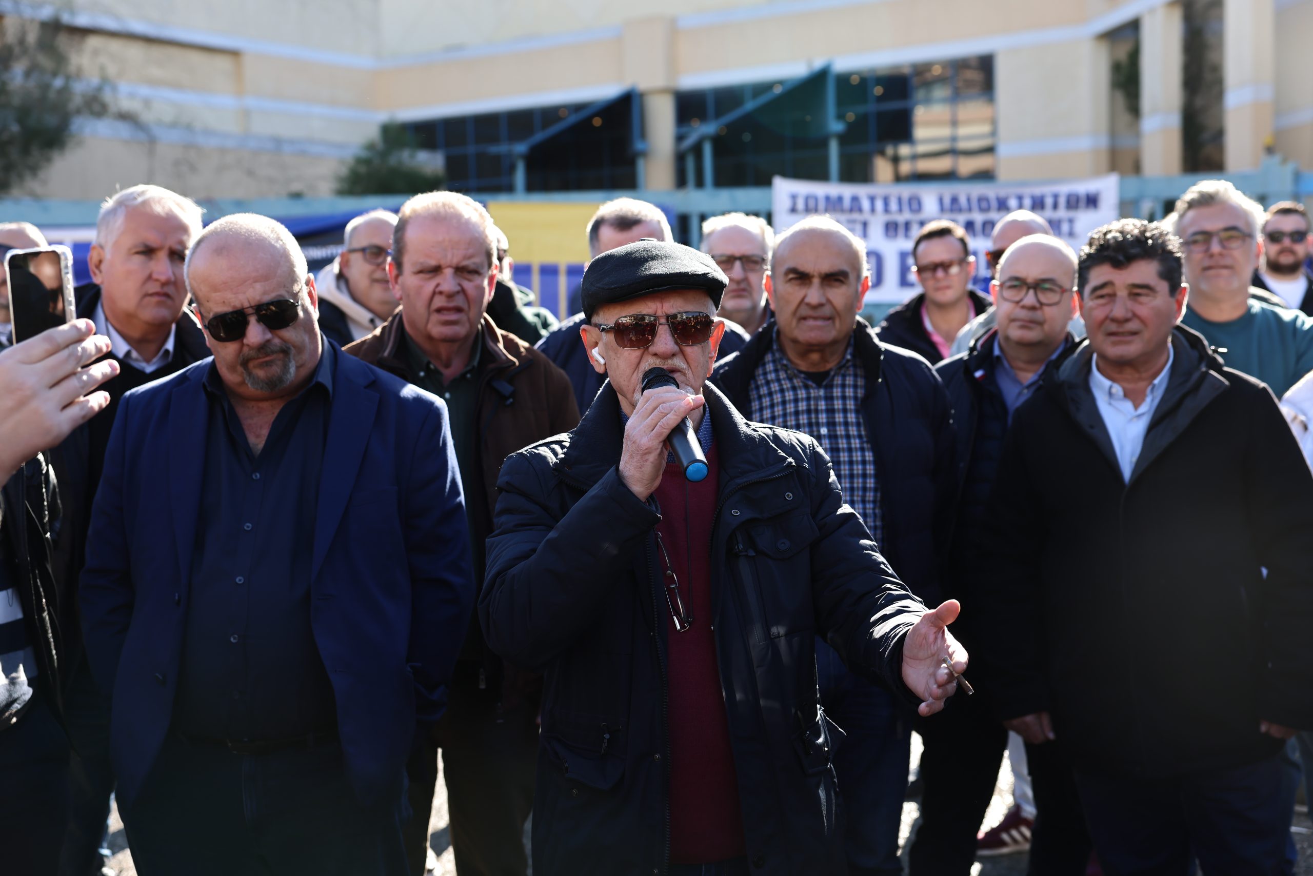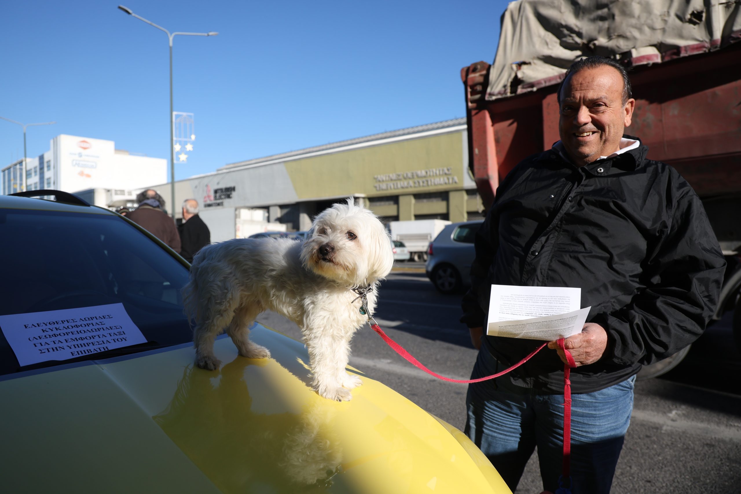 Έξω από το υπουργείο Μεταφορών ιδιοκτήτες και οδηγοί ταξί (φωτό)