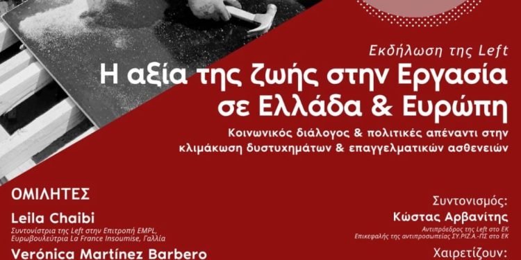 Η πολιτική ομάδα της Αριστεράς στο Ευρωπαϊκό Κοινοβούλιο (The Left) διοργανώνει στην Αθήνα μια δημόσια συζήτηση για την αξία της ανθρώπινης ζωής στην εργασία, με συντονιστή τον Κώστα Αρβανίτη, αντιπρόεδρο της The Left και επικεφαλής της ευρωομάδας του ΣΥΡΙΖΑ – ΠΣ.