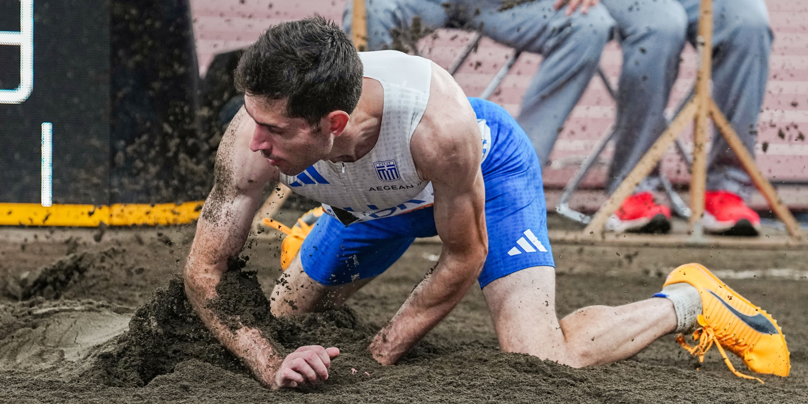 Παρά το γεγονός ότι άρχισε τον αγώνα του με δύο άκυρες προσπάθειες, ο 27χρονος αθλητής του Γ.Σ. Κηφισιάς ανέβασε σταδιακά στροφές. Ακολούθησαν άλματα στα 8,12 μ. και 8,15 μ., πριν «προσγειωθεί» στα 8,25 μ. στην πέμπτη του προσπάθεια, σημειώνοντας την καλύτερη επίδοση της διοργάνωσης.