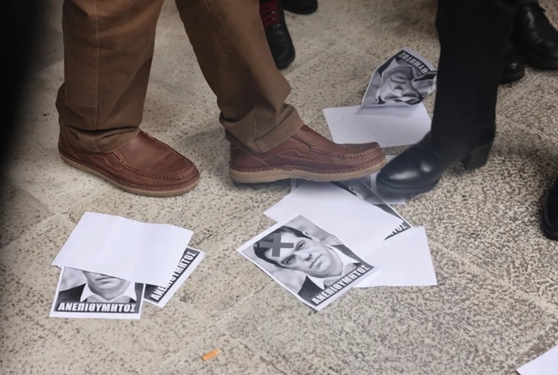Εξάλλου, σημειώθηκε μικρή ένταση με πέντε άτομα που προσέγγισαν και πέταξαν τρικάκια έξω από το Ολύμπιον. Έγιναν δύο προσαγωγές, ο ένας είναι ο διοργανωτής του καλέσματος.