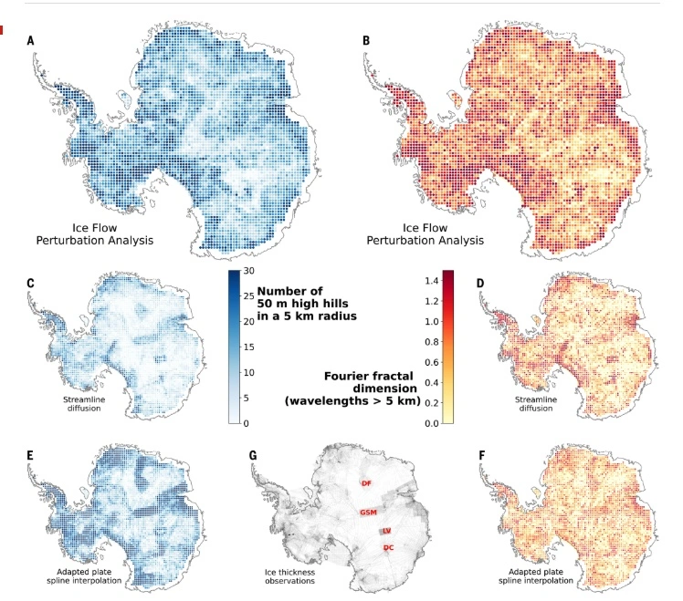 Οι επιστήμονες δεν χρειάστηκε να τρυπήσουν τον πάγο για να χαρτογραφήσουν το υπέδαφος. Αντίθετα, αξιοποίησαν τη συμπεριφορά του ίδιου του πάγου. Καθώς οι παγετώνες κινούνται αργά προς τη θάλασσα, η ροή τους επηρεάζεται από το έδαφος που βρίσκεται από κάτω. Μικρές αλλαγές στην ταχύτητα και στο σχήμα της επιφάνειας «προδίδουν» τι υπάρχει στο υπέδαφος.