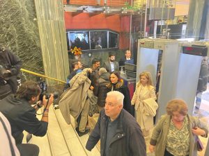 Πρώτος ο Κώστας Μπάρκας που έφτασε και συνομιλεί με πολίτες που περιμένουν να ανοίξουν οι πόρτες. Επίσης ο Μίλτος Ζαμπάρας και ο Βασίλης Κόκκαλης.