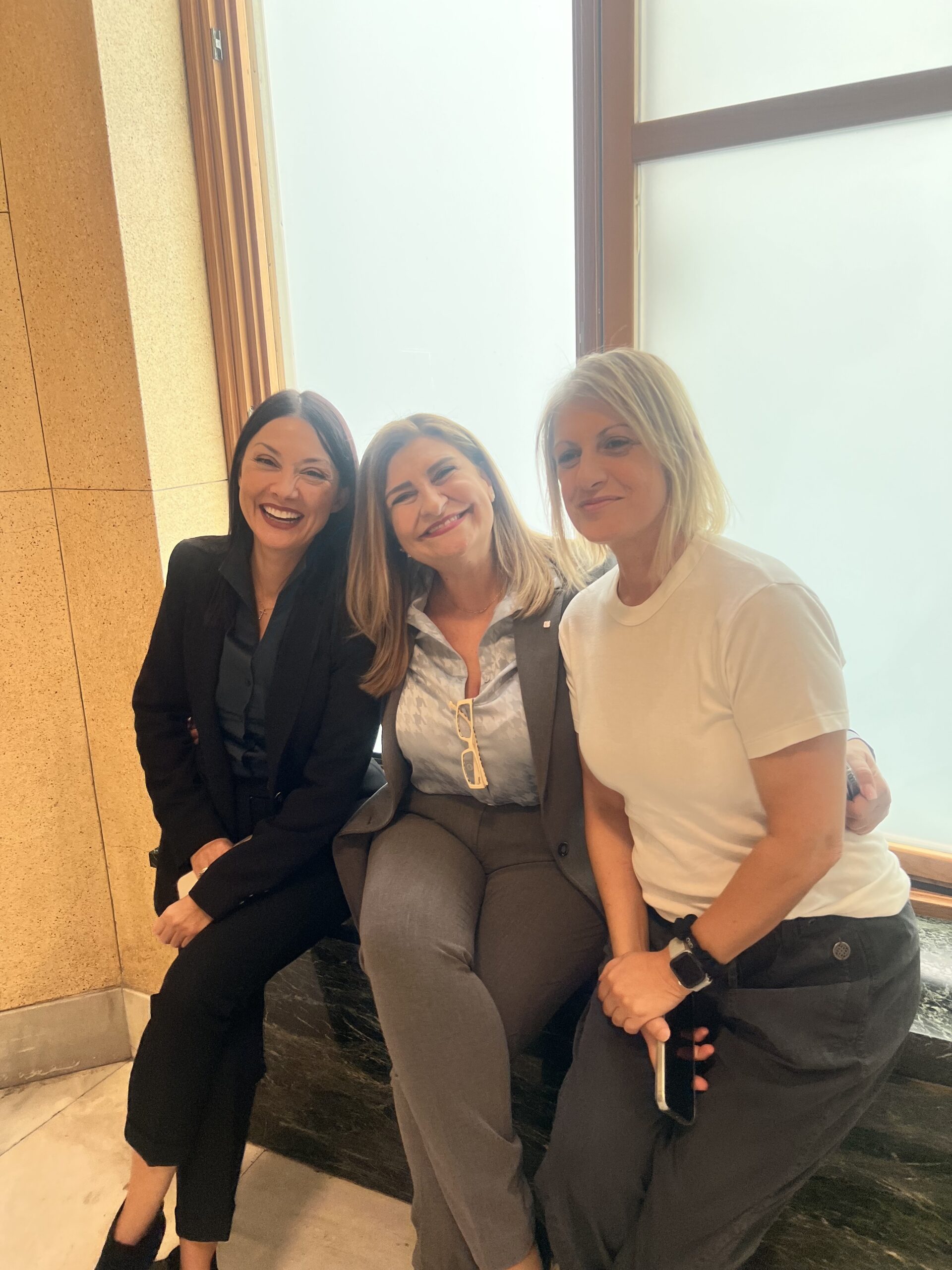 Οι τρεις κυρίες του ΠΑΣΟΚ χαλαρώνουν στα πρεβάζια της Βουλής, λίγο πριν σηκώσουν μανίκια για να ριχτούν στη μάχη — τόσο στην Ολομέλεια όσο και στην Εξεταστική Επιτροπή.