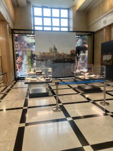 Ο χώρος διαμορφώθηκε κατάλληλα για την περίσταση, με ένα εντυπωσιακό φιλοτέχνημα ανώνυμου καλλιτέχνη, γνωστού με το συμβατικό όνομα Maestro di Violantria, καθώς και με διάφανα αναλόγια που φιλοξενούσαν βιβλία από τη Βιβλιοθήκη της Βουλής.